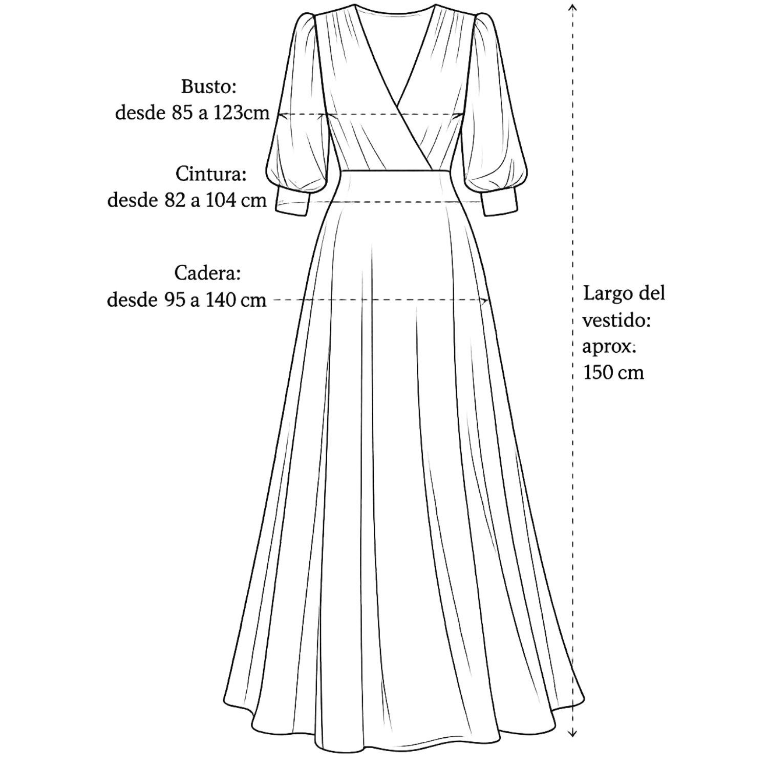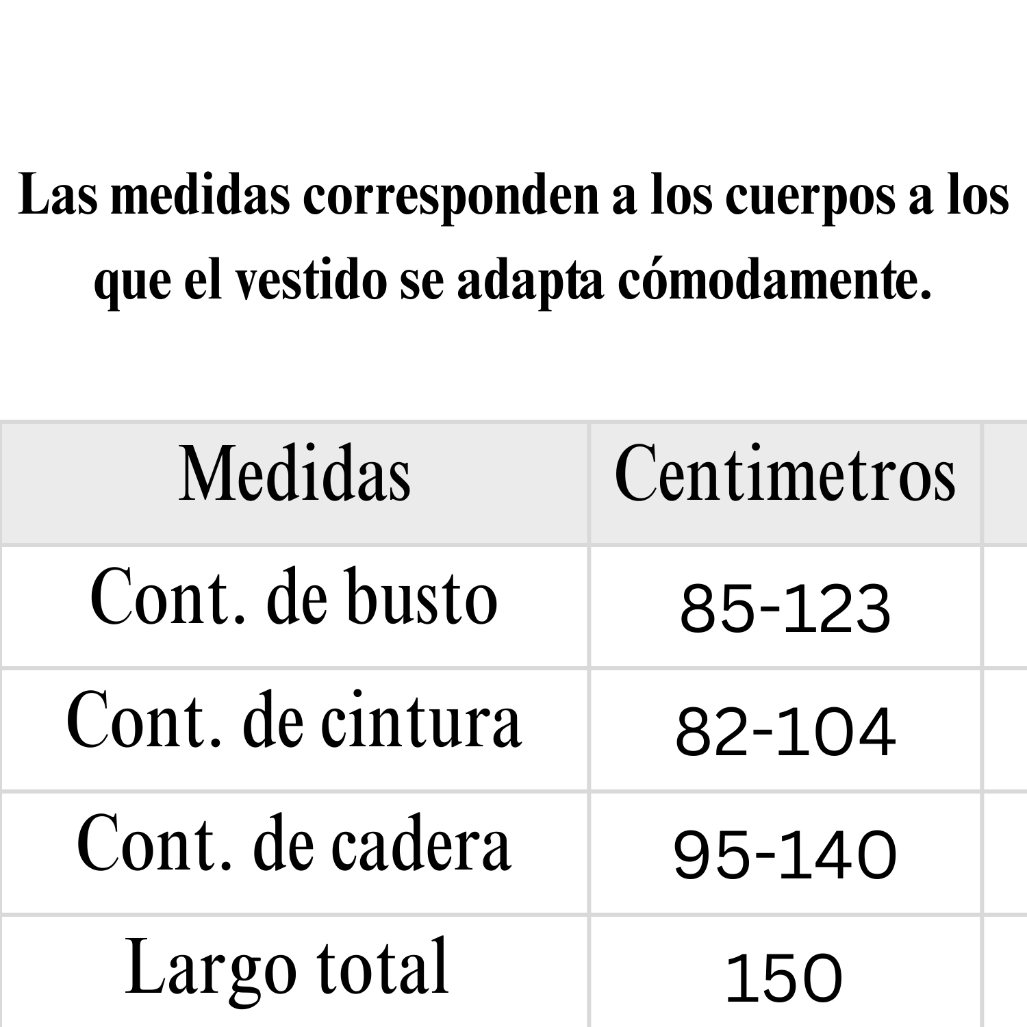 Las medidas corresponden al cuerpo que el vestido puede calzar cómodamente.
